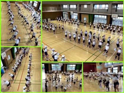 4年 そろっています!(10/4) 公開日 2024/10/04 更新日 2024/10/04 4年 昨日今日と雨のため運動場が使用できないので、講堂での練習が続きました。踊りをそろえるだけでなく、列もそろえようと意識して取り組んでいました。グループごとに確認し合うなど自主性も見られ、4年生の頑張りが伝わってきました。 いいね(0)
