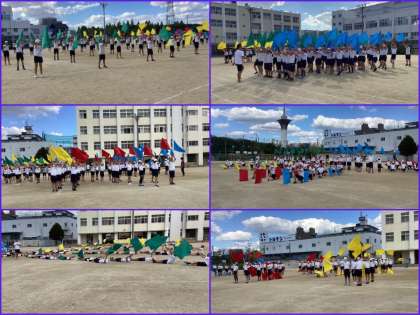 6年 まさに一体感(10/10) 公開日 2024/10/10 更新日 2024/10/10 6年 運動場で通しでの練習をしました。フラッグがきれいにそろって、風になびいています。一体感を感じました。昼休みには「かけ声オーディション」が行われ、まだまだ見どころたっぷりの6年生の団体演技でした。 いいね(0)