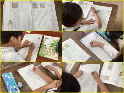 2年 お話を考えて書こう(10/16) 公開日 2024/10/16 更新日 2024/10/16 2年 国語科では「絵を見てお話を書こう」の学習をしています。3場面のお話を考えて文章を書き、その場面の絵を考えていました。2場面からのつながり、そして4場面にどのようにつながっていくか、しっかり考えてお話を作ることができました。 いいね(0)