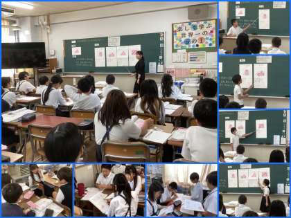 5年 三角形の面積を求めるには?(11/1) 公開日 2024/11/01 更新日 2024/11/01 5年 算数科の学習の様子を先生方に見ていただきました。三角形の面s期の求め方をいろいろな方法で考え、求めました。自分の考えをグループ交流したり、全体の場で分かりやすく説明したりと主体的対話的な活動がしっかりでき、感心しました。 いいね(0)