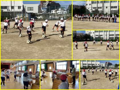 2年 ボールけり&とびばこ遊び(11/5) 公開日 2024/11/05 更新日 2024/11/05 2年 11月の体育科の学習は、運動場ではボールけり遊び、講堂ではとび箱遊びです!ボールけりでは、ボールをけりながら「だるまさんがころんだ」をしました。先生が振り向くとボールを足で止めるのですが、なかなか難しい様子でした。講堂へ行くと…残念ながら片づけの場面でした。みんなで協力して片づけができました。 いいね(0)