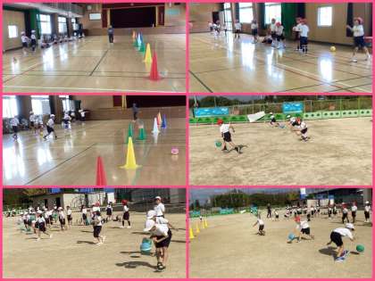 1年 ボールを使って(11/7) 公開日 2024/11/07 更新日 2024/11/07 1年 コーンをめがけてボールを投げたり、ドリブルしながらコーンを回ったり、ボールを使った運動に取り組んでいます。コーンにボールが当たると体いっぱいで喜ぶ姿、ドリブルは難しいけれど根気強く挑戦する姿に、ほっこりしました。 いいね(0)