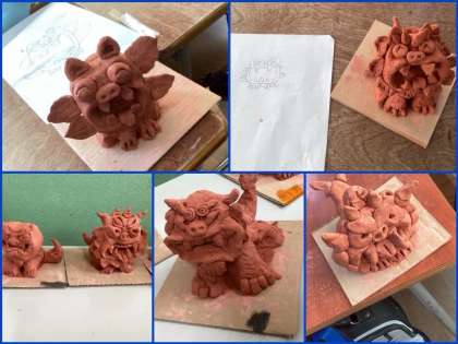 5年 シーサー完成!(11/8) 公開日 2024/11/08 更新日 2024/11/08 5年 以前、テラコッタ粘土でシーサーを制作しているとお伝えしました。違うクラスで制作していました♪迫力満点のシーサーが完成しました。 いいね(0)