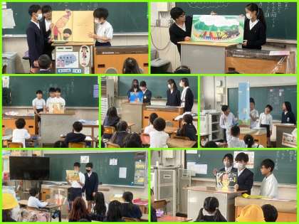 読書意欲を高めるために、図書委員会作成の「しおり」が配布されました。8日(金)の朝の読書タイムでは、図書委員会が1・2年生の学級で「絵本や紙芝居の読み聞かせ」をしました。どのクラスも本の世界に入って聞いていました。