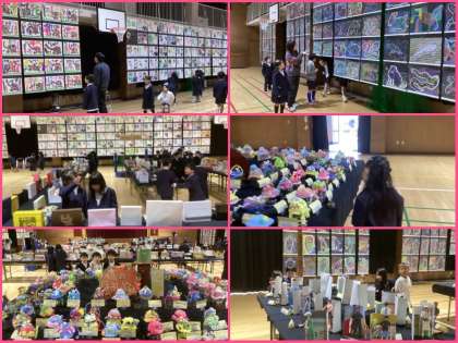 1年 作品展鑑賞会(12/13) 公開日 2024/12/13 更新日 2024/12/13 1年 作品展の児童鑑賞会が本日より始まりました。1年生が鑑賞している様子を見に行きました。自分の作品はもちろん、兄・姉の作品を探したり、自分好みの作品の前で立ち止まったりしながらじっくり鑑賞していました。「すごい!」と魅了されていた1年生でした♪ いいね(0)
