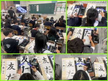 3年生から習字が始まり、初めての書き初め体験。いつもより長い画仙紙に「友だち」と書きました。集中してとても丁寧に書くことができました!!これから取り組む学級もあるので、またご紹介しますね♪