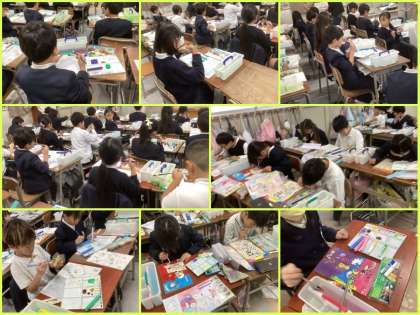 図画工作科では「くぎ打ちトントン ビー玉ゲーム」を制作します。下描きを終え、色塗りをしているところです。色塗りが終わると…いよいよくぎ打ちトントン!!初めてのくぎ打ちに挑戦しますよ〜。