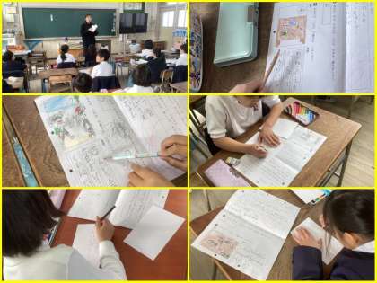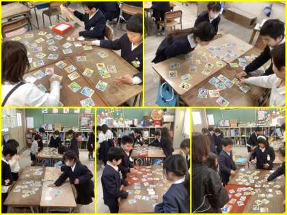国語科では「むかしからつたわる言い方」の学習で「かるた」について学び、自分でもかるたを制作しています。学校行事の楽しかった思い出を上手に絵札や読み札で表していました。かるたを楽しむ姿も見られました♪