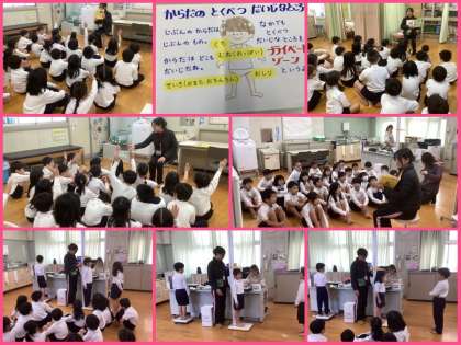 1年 発育測定(1/21) 公開日 2025/01/21 更新日 2025/01/21 1年 お待たせしました!今日は1年生の発育測定。自分の成長が知りたい1年生。保健室の先生に「身長を教えてください」とお願いする姿がたくさん見られました。保健指導では「プライベートゾーン」について知りました。体のとくべつ大事なところをしっかり守って、すくすく大きくなってほしいです。 いいね(0)
