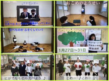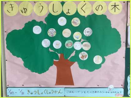 今日から31日までは茨田西小学校の「給食週間」です。給食委員会のみなさんが「ごはんの大切さ」の動画を制作し、全校のみんなで視聴しました。今日から1週間、ごはん・パンを食べきれたら「給食の木」にシールをはる取り組みをしています。食物に、そして食物に携わるみなさんに感謝して給食を食べましょう。