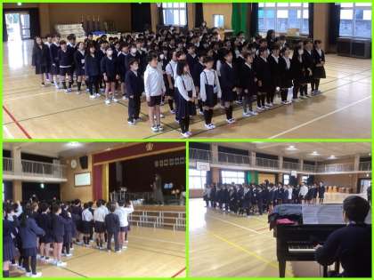 5時間目に講堂で合同音楽をしました。4年生の美しい歌声が講堂いっぱいに響き渡り、鳥肌が立つほど感動しました。先生からの歌声アドバイスをよく聞いてすぐに実行できる4年生。とっても素敵でした♪