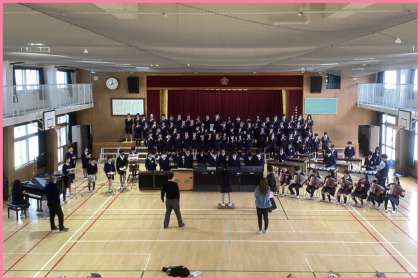 6年 息をそろえて…(2/3) 公開日 2025/02/03 更新日 2025/02/03 6年 卒業コンサートの練習が着々と進んでいる6年生。合奏の練習風景を見ることができました!演奏の出だしや終わりなど息をそろえる場面がたくさんあり、繰り返し練習していました。みんなの息がバッチリあった瞬間は感動的でした♪ いいね(0)