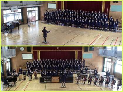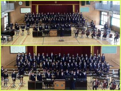卒業コンサートがいよいよ明後日となりました。今日はリハーサル。本番さながらに行いました。先生方も様子を見に来られ、緊張感が高まりましたね。本番では、これまでの練習の成果を思い残すことなく発揮して、6年生の力を、絆をしっかり見せてほしいと思います。気がつくと…すうっと涙がこぼれていました。保護者のみなさま、ハンカチを忘れず持ってきてください♪