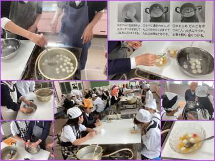 今週は5年生の調理実習WEEKです。今回調理するのは「白玉だんご」。白玉粉に入れる水の量が絶妙なので、とても慎重に取り組んでいました。とはいえ、そこを乗り越えればおいしく出来上がるので、みんなとても楽しそうでした。
