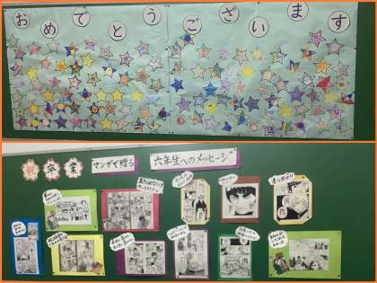 各学年や委員会の担当する掲示板が、6年生の卒業をお祝いする掲示へと変わり始めました。こうして学校全体が卒業お祝いモードへと変わっていきます。
