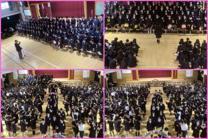 校長先生のお話と終わりのことばに続いて6年生が退場しました。茨田西っ子の素敵な姿が溢れたお祝い集会となりました。