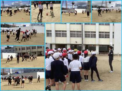 セレッソ大阪のコーチをお招きして、トップアスリート「夢・授業」を行いました。昨日までの雨で開催できるか心配でしたが、5年生の気持ちが届いたのでしょう。お日様も顔をのぞかす天気となりました。「楽しむこと」をねらいとして、ボールタッチゲームやドリブル散歩など、だれもが楽しめるボール運動をしました。最後はコーチ&先生チームとの試合!子どもも大人も本気で勝負しました。