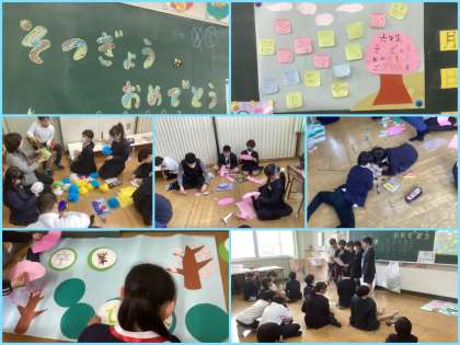 先週の金曜日に今年度最後のなかよしタイムがありました。5年生が中心となり、6年生の卒業をお祝いする会を開きました。また、みんなで協力して卒業をお祝いする掲示物づくりもしました。なかよしタイムを通して、他学年との絆がうんと深まった1年でした。6年生のみなさん、ありがとう♪