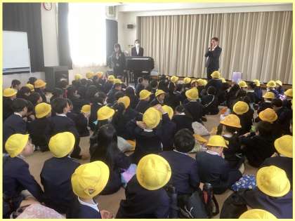 今日の入学式、在校生を代表して2年生が1年生に歓迎の演技のプレゼントしました。練習の成果を生かして、とても立派にその役割を務めました。写真は役目を終えて音楽室でほっと一息ついている2年生の様子です。これまでの練習、そして今日の本番とよく頑張りました。大きな拍手を贈ります!!
