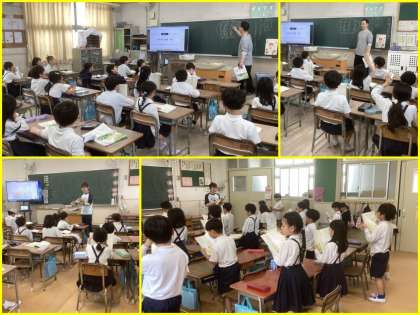 国語科で「たんぱぱ」という詩を音読しまいs田。たんぽぽの綿毛にはたくさんの名前があるようです。「おーい たぽんぽ」と親しみを込めて読んでいました。