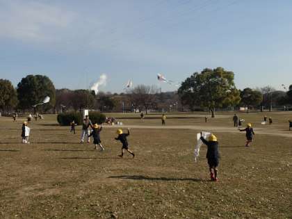 場所は鶴見緑地です。大芝生で4クラス合同で実施しました。