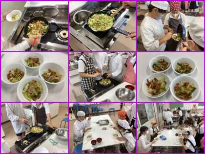 今日と明日、野菜炒めの調理実習を行います。5年生で培った調理の腕を発揮して、安全と衛生に気をつけて実習しました。野菜の切り方がとても上手で感心しました。グループで協力して、いろどり鮮やかな野菜炒めが完成しました♪