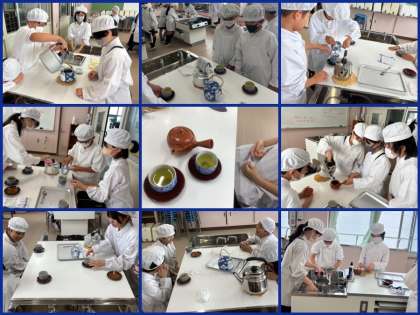 家庭科では初めての調理実習を行いました!!ガスコンロの使い方を知り、やかんでお湯を沸かして緑茶をいただきました。はじめは旨味や甘みが感じられおいしかったお茶が、時間が経つにつれて渋みや苦みが増してきましたね。家庭科の学習は家庭での実践も大切になります。家族のために、おいしいお茶を入れてみましょう!