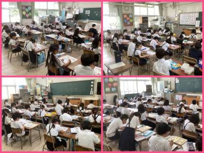 1年 はじめての自習(5/23) 公開日 2025/05/23 更新日 2025/05/23 1年 6年生の研究授業に伴い、1年生ははじめて「自習」をしました。担任の先生との約束を守って、とても静かに、そして熱心に自習ができた1年生でした♪拍手!! いいね(0)