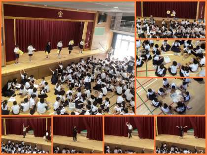 今日は「この声だあれだ!」クイズをしました。5人の先生方が順番に声を出し、だれかを当てるクイズです。5人ともが声まねしたり声を変えたりするので、検討がつきませんでしたが、答え合わせは大盛り上がり。朝から楽しい時間になりました。いつもはほとんどの班が全問正解しますが、今日は‥‥。それくらい先生たちが上手でした♪