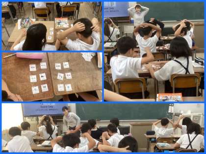 外国語では「時間割にある教科」について学習しました。まず会話をリスニングして、その教科のカードをいち早く見つける活動をしました。隣同士ペアで対戦したのでとても盛り上がりました♪