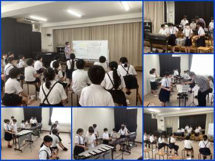 「リボンのおどり(ラ バンバ)」という曲でリコーダー奏をしたり、合奏をしたりしています。木琴・鉄琴・オルガン・小だいこ・タンブリンの各楽器に挑戦しました。教え合ったり、助け合ったりしながら楽しく取り組んでいました。