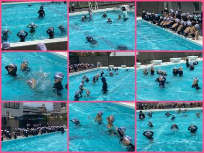 1年 かえるにへんし〜ん(7/14) 公開日 2025/07/14 更新日 2025/07/14 1年 プールの学習、よく頑張っています。「かえるにへんし〜ん」のかえるジャンプでは、頭まで水中にもぐってからのジャンプができるようになりましたね。日々成長している1年生です♪ いいね(0)