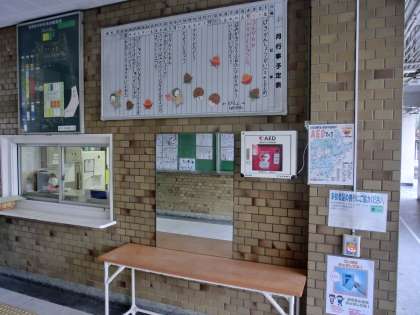 学校の玄関を入ったところの壁にAEDを設置しています。