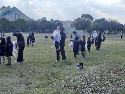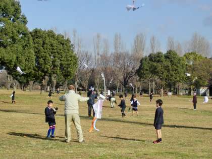 1月22日(水)、鶴見緑地で1年生がたこあげをしました。地域からは敬老会のみなさんも多数参加してくださって、楽しいたこあげ大会となりました。風をうけて高くまで揚げている子もいれば、ひたすら走っている子もいました。