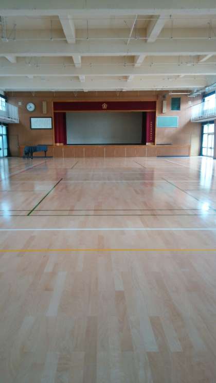 10月に入り、講堂の床の張り替え工事が終わりましたので画像を載せておきます。