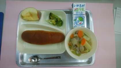 鶏肉と野菜の洋風煮・・・コンソメ味がよくきいて、肉、ウィンナー、野菜がよく合っていた。