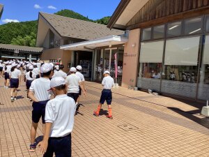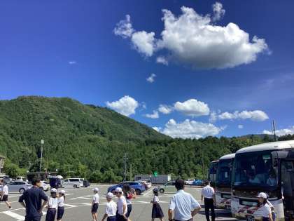 5年 林間学習1日目その3(7/28) 公開日 2025/07/28 更新日 2025/07/28 5年 道の駅まほろばに到着し、2回目のトイレ休憩を行いました。とてもいい天気で空気もすがすがしいです。道中の景色が山深くなってきました。ハチ高原到着まであと少しです! いいね(0)