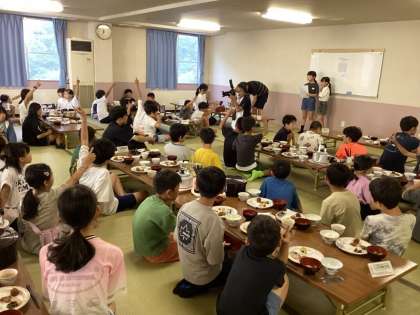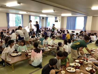 朝食タイム!今日1日のエネルギーの源です。みんな、しっかり食べていました。