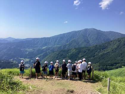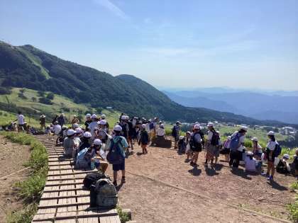 5年 林間学習2日目 その8(7/29) 公開日 2025/07/29 更新日 2025/07/29 5年 高丸山山頂に到着しました。標高1070mからの景色は最高です。よく頑張りました〜(拍手) いいね(0)
