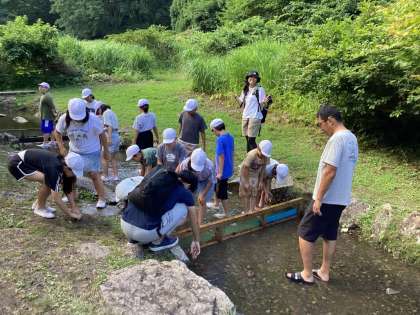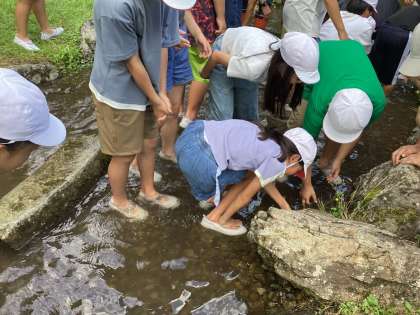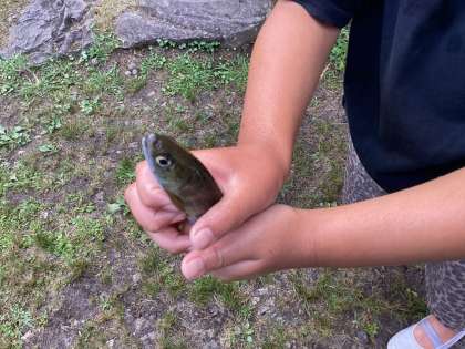 魚つかみをしました。せせらぎは雪解け水なので、ひんやり冷たかったことでしょう。日も傾いてきて、涼を感じるひとときでした。