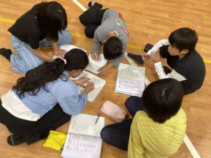 2日目を振り返る班会議を行いました。たくさんの活動を仲間とともに力を合わせて取り組みました。よく頑張ったみんなに大きな花丸を贈ります♪
