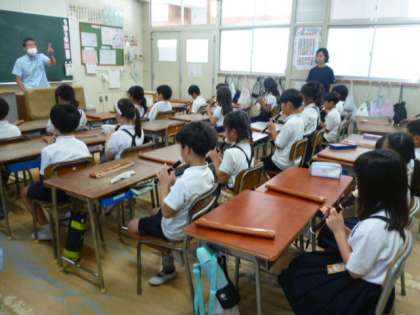 9月18日(木)にバイオリン奏者をゲストティーチャーに迎え、音楽鑑賞を行います。コラボのコーナーでは、情熱大陸の曲をリコーダーでコラボします♪うまくコラボできるように、音楽専科の先生と練習をしました。良い姿勢できれいな音色で演奏していて、3年生の成長に感心しました。