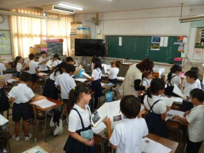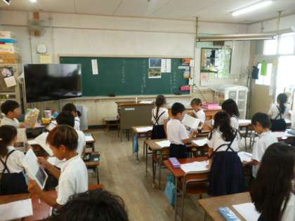 国語科では「ビーバーの大工事」の学習をしています。隣同士ペアになって音読しました。はっきりとした声で音読できていました♪