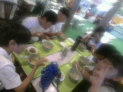 食事券を使ってのランチタイム!和気あいあいとした雰囲気で食べています♪午後からはショータイムが目白押し。計画的に活動できる6年生、さすがですね!