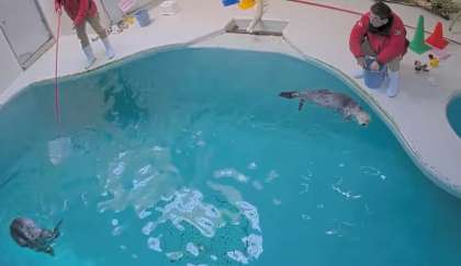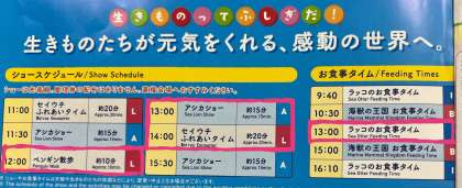 ピンク色で囲んだ時間のショーをねらって、活動している様子です。ラッコのお食事タイムの様子はライブカメラがあり、なんと、学校からも見ることができました。