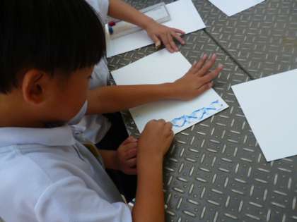 1年 クレパスでこすると…(9/24) 公開日 2025/09/24 更新日 2025/09/24 1年 ガタガタ、ざらざらしたところでクレパスをこすると、模様ができます。「わあ…☆」「きれい!」などと言って、模様作りを楽しんでいました。この模様は…図画工作科で使いますよ!! いいね(0)