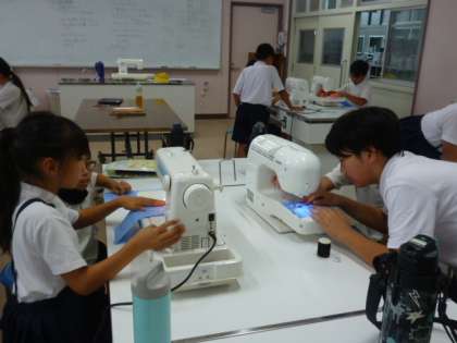 家庭科ではミシンの学習が始まりました。安全に気をつけて協力しながら取り組んでいます。線の上をまっすぐ縫おうと真剣そのものでした。