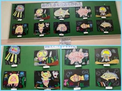 2年 海の生き物あらわれた(10/2) 公開日 2025/10/02 更新日 2025/10/02 2年 9月のホームページで紹介した2年生の点描による絵画、とっても素敵に仕上がりました。教室や階段に掲示されています。目にするたびに「こつこつとよく頑張ったね!」という思いでいっぱいになります。 いいね(0)
