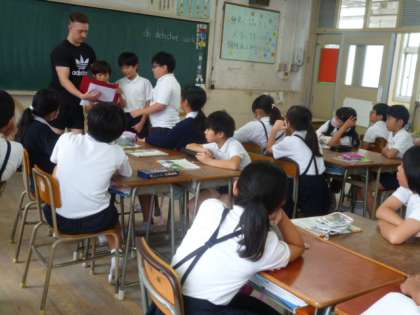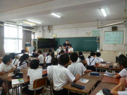 外国語では、人物クイズをしました。「can」を使った文章を作り、その人物について紹介します。その人物は木に登ることができ、バナナを食べることができ、ドーナツを100個買うことができ、宇宙に行くことができるそうです…さて、いったい誰でしょう??
