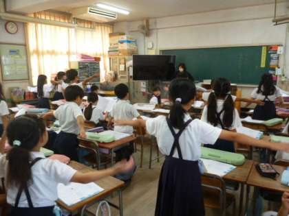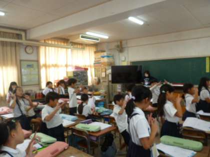 音楽科では鍵盤ハーモニカの練習をして、テストをしました。運動会で踊る曲を歌ってみようと歌詞カードが配られました。曲が流れると自然に体が動いて…歌うではなく踊ってしまう2年生でした♪